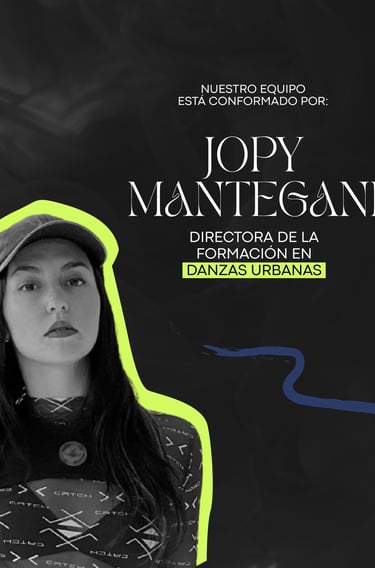 Profesora y bailarina de Street Dance capacitada con los mejores referentes y pioneros del Street Dance en Estados Unidos: Broadway Dance Center, Peridance Capezio Center, Millenium Dance Complex, Steps on Broadway, Movement y Playground; y en otros países como Chile, Brasil y Perú.